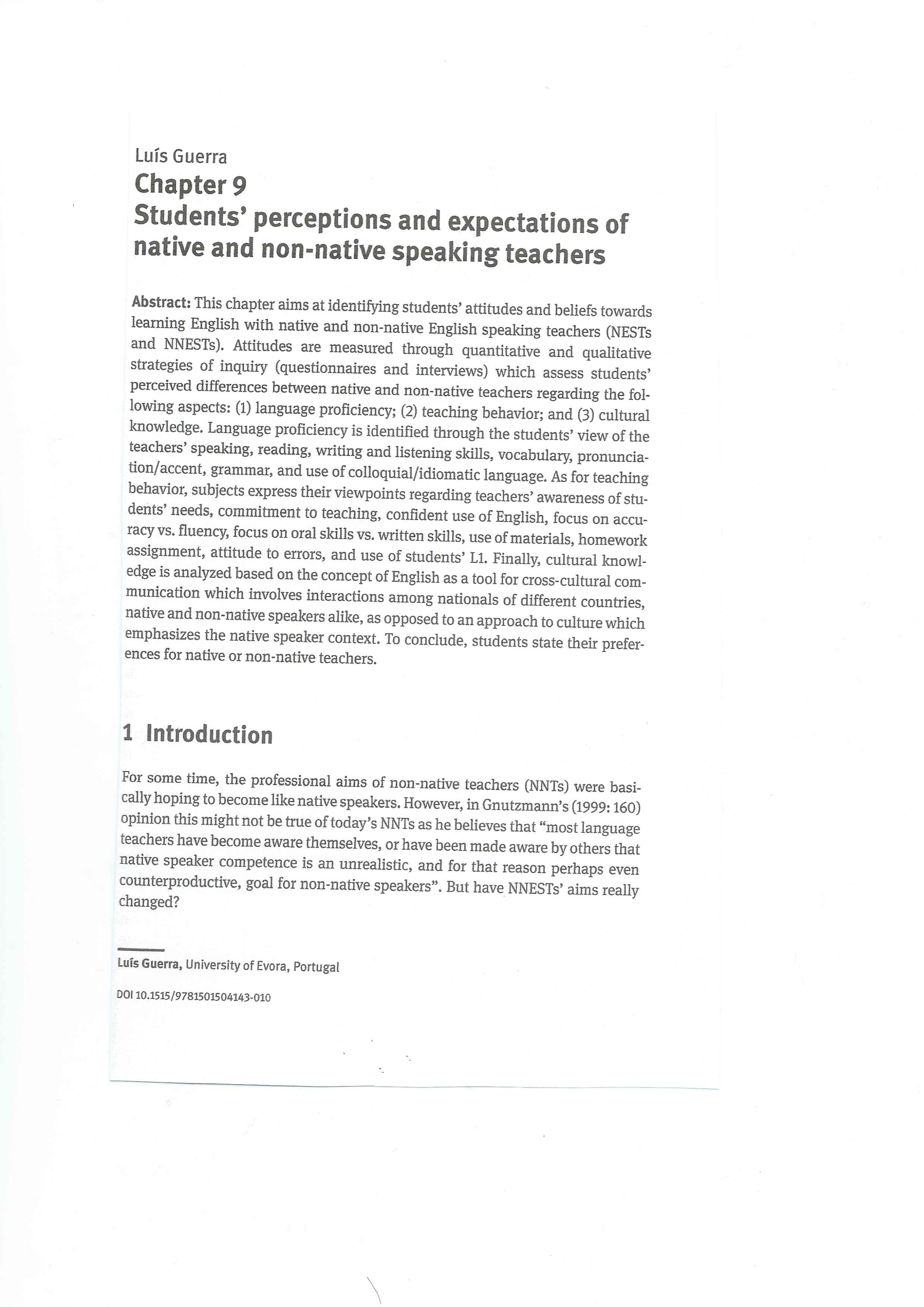 | Title: | Students’ perceptions and expectations of native and non-native speaking teachers |
