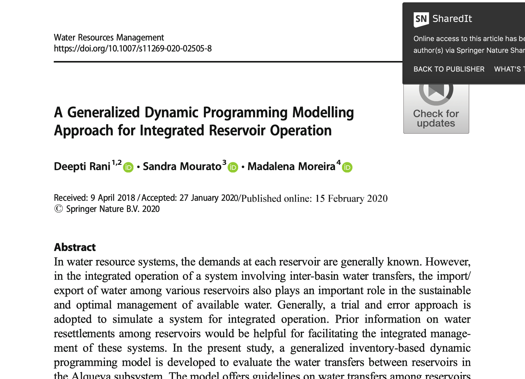 | Citation: | Rani, D., Mourato, S. & Moreira, M. A Generalized Dynamic Programming Modelling Approach for Integrated Reservoir Operation. Water Resour Manage (2020). https://doi.org/10.1007/s11269-020-02505-8 |