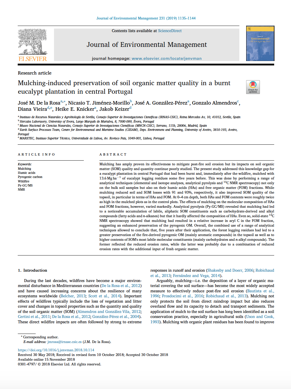 | Authors: | De la Rosa, José M. Jiménez-Morillo, Nicasio T González-Pérez, José A Almendros, Gonzalo Vieira, Diana Knicker, Heike Keizer, Jakob |