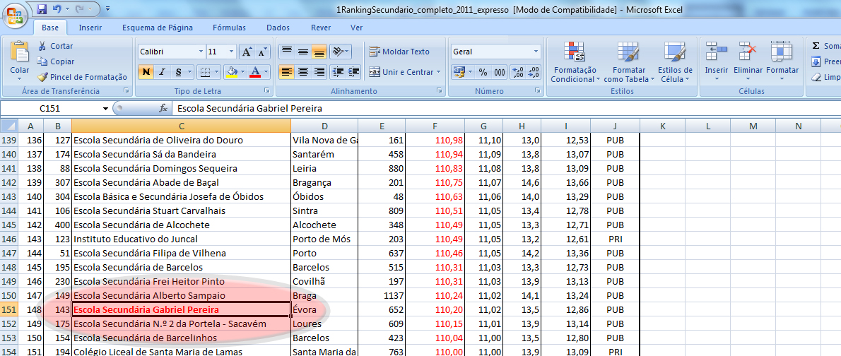 Secundária Gabriel Pereira em Évora, sob a orientação do Professor