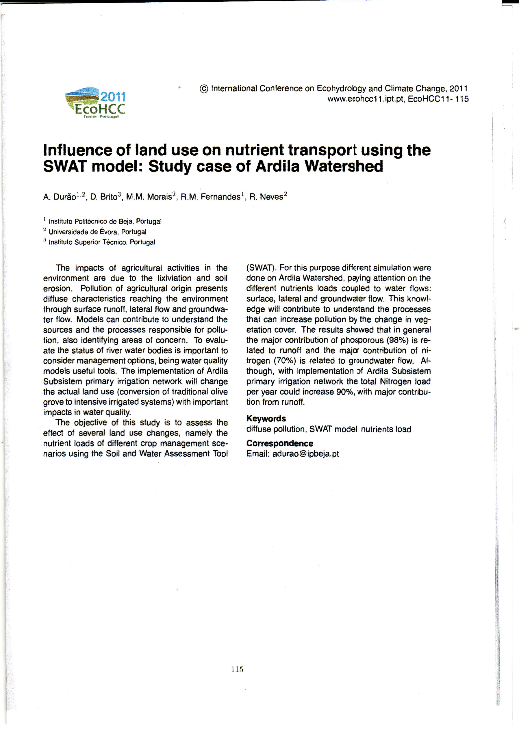 | Title: | Influence of land use on nutrients transport using SWAT model: Study case of Ardila Watershed |