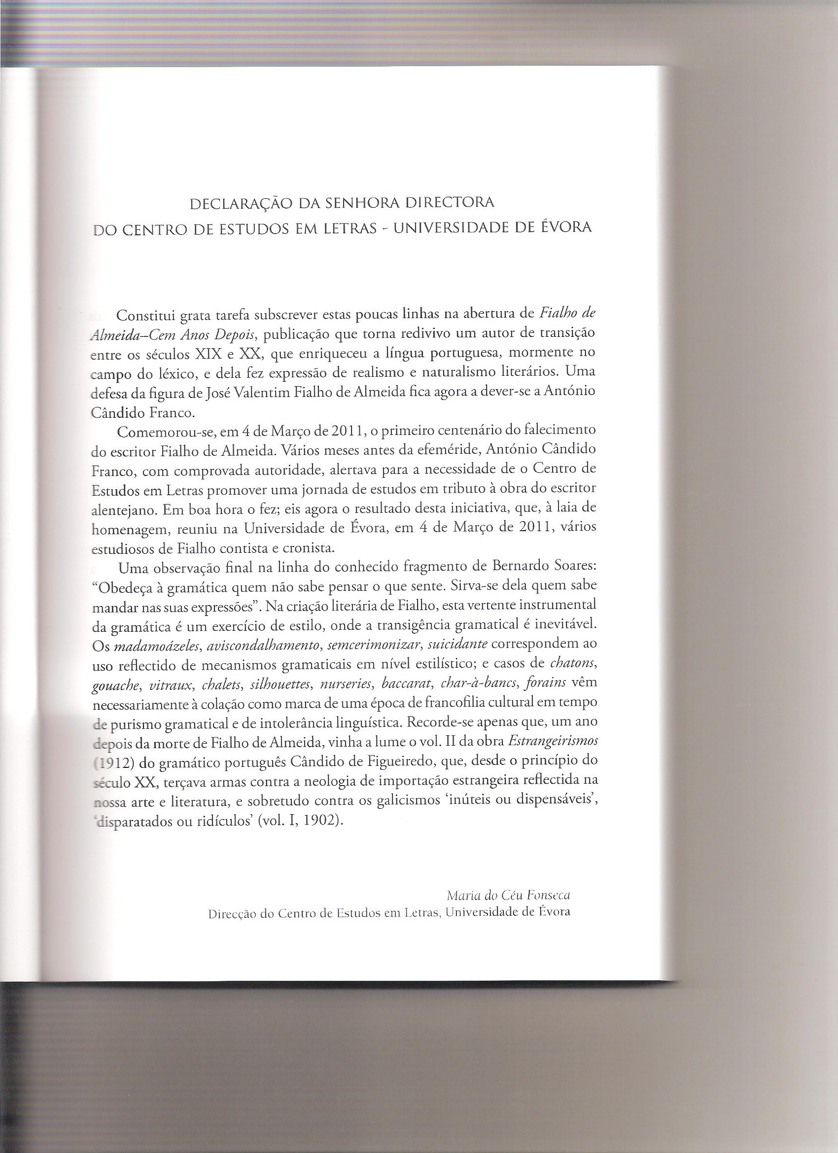 | Title: | Fialho de Alemida. Cem Anos Depois (Apresentação) |