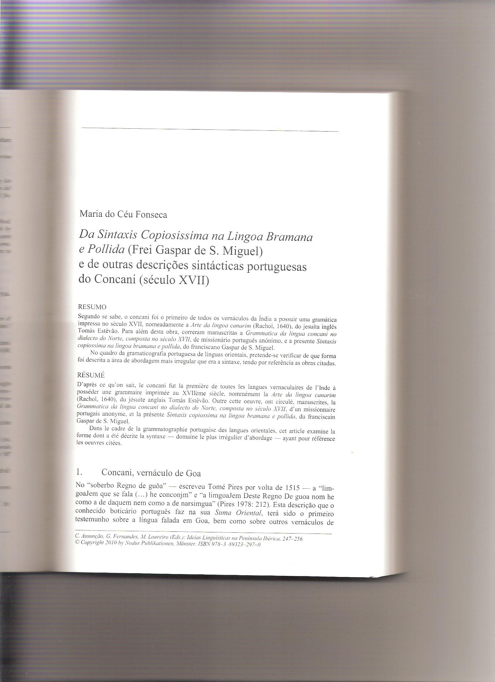 | Title: | Da "Sintaxis Copiosissima na Lingoa Bramana e Pollida", de Frei Gaspar de S. Miguel, e de outras descrições sintácticas portuguesas do concani (século XVII). |