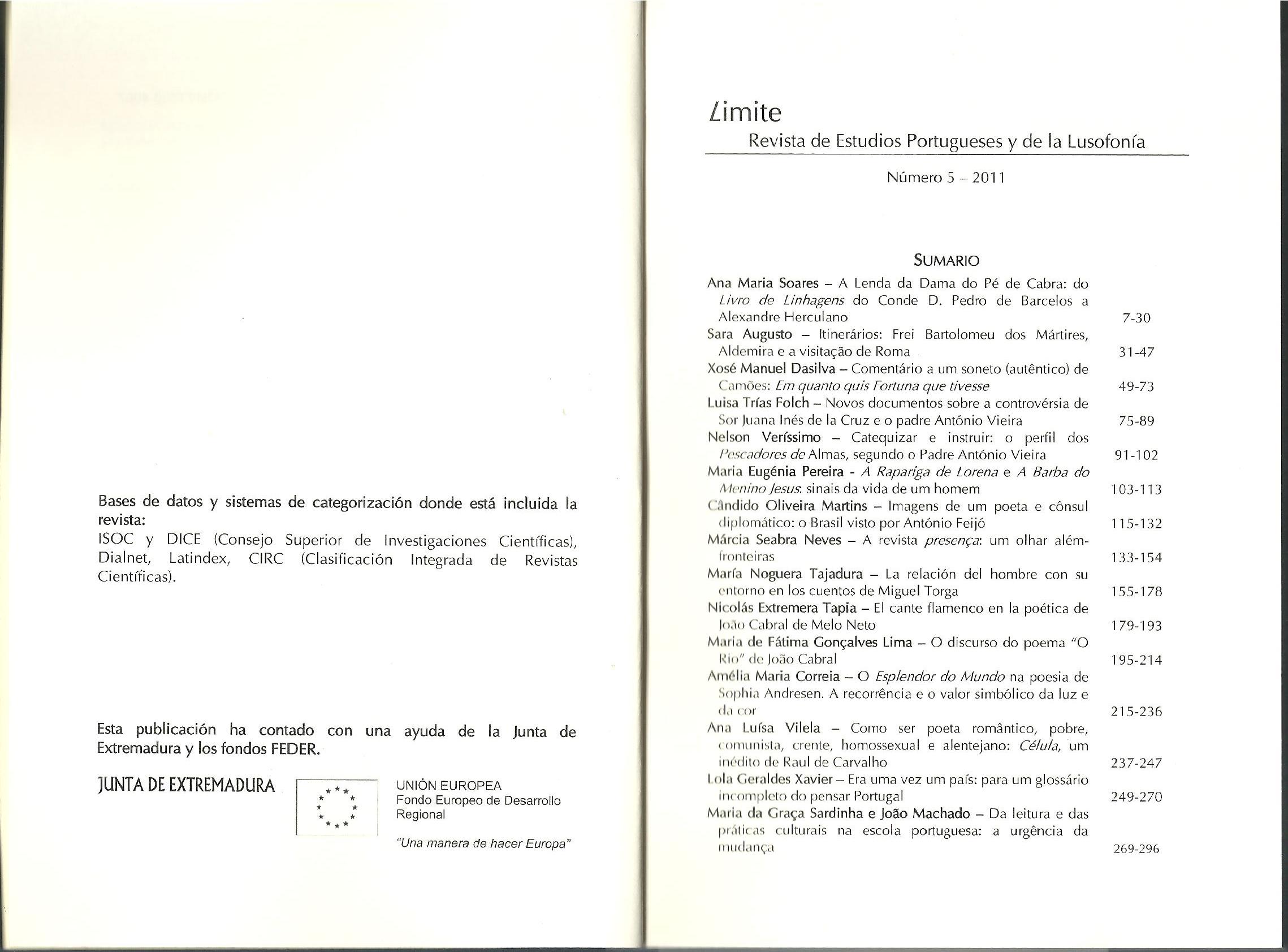 | Citation: | VILELA, Ana Luísa. "Como ser poeta romântico, pobre, comunista, crente, homossexual e alentejano: Célula, um inédito de Raul de Carvalho". Limite. Revista de Estudios Portugueses y de la Lusofonía, nº 5, Universidad de Extremadura, ISSN: 1888-4067, pp. 235-247. |