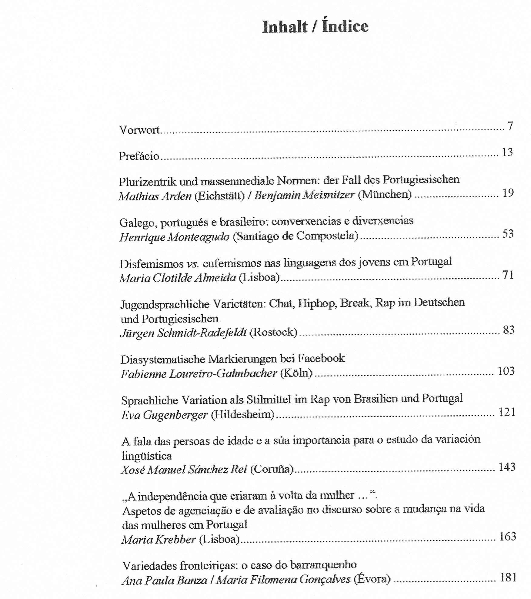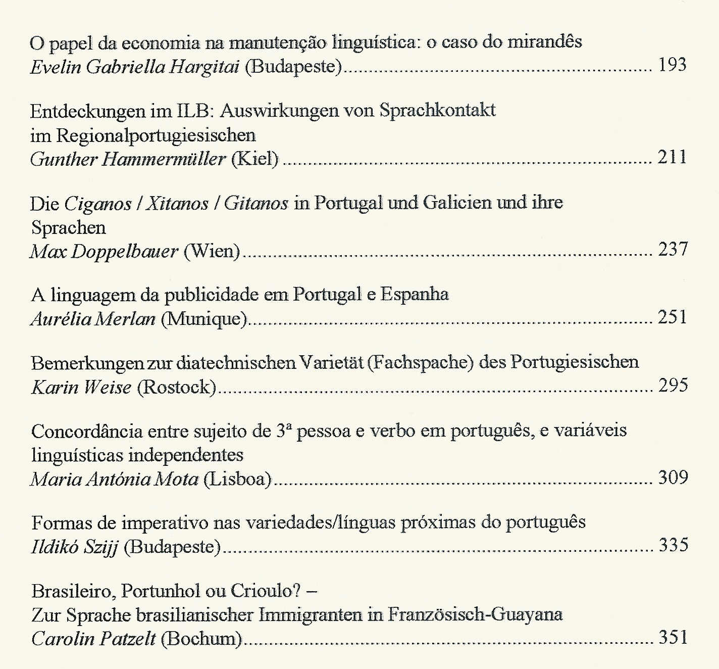 | Citation: | BANZA, Ana Paula e Maria Filomena GONÇALVES (2013), “Variedades fronteiriças: o caso do Barranquenho”, MERLAN, Aurelia Merlan / Jürgen SCHMIDT-RADEFELDT (Hrsg.) (2013), Portugiesisch als Diasystem / O Português como Diassistema, Frankfurt am Main etc.: Peter Lang Verlag, pp. 181-192. ISSN 1437-3130/ISBN 978-3-631-64109-5 (Print)/E-ISBN 978-3-653-02802-7 (E-Book)/DOI 10.3726/978-3-653-02802-7 |