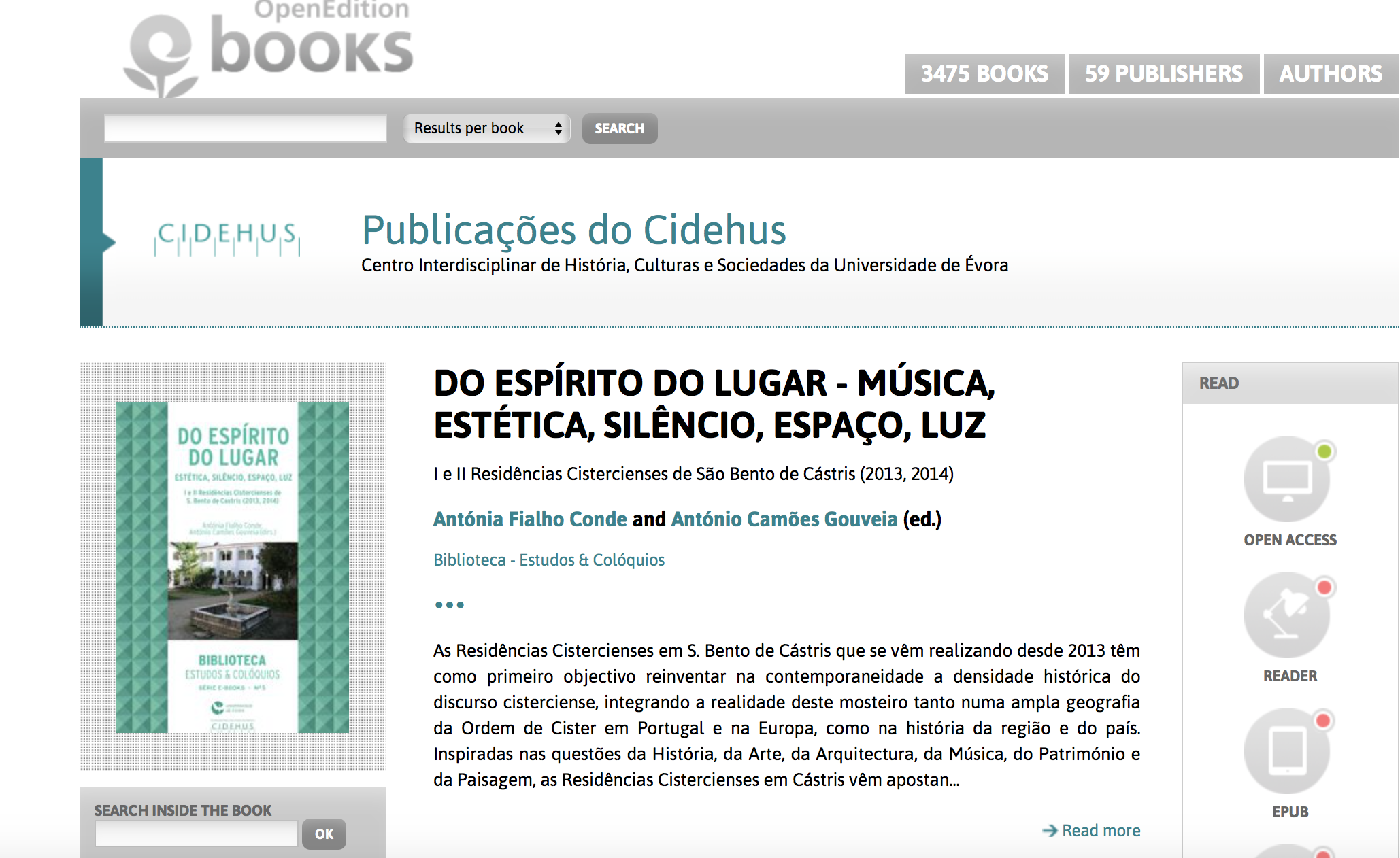 | Citation: | CONDE, Antónia Fialho; GOUVEIA, António Camões (dir.) - Do Espírito do Lugar - Música, Estética, Silêncio, Espaço, Luz