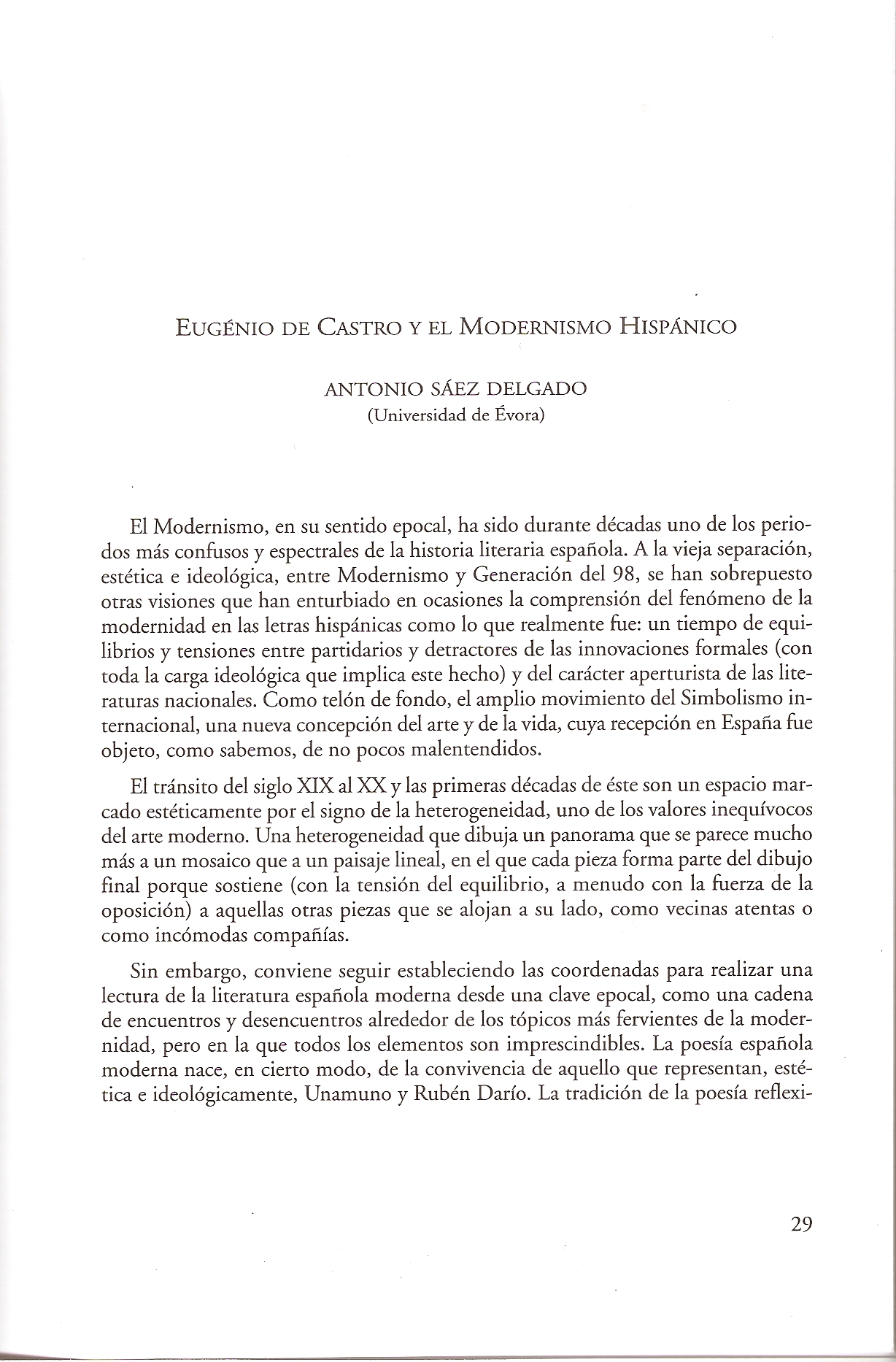 | Citation: | Antonio Sáez Delgado, "Eugénio de Castro y el Modernismo hispánico", en Eloísa Álvarez y Antonio Sáez Delgado (eds.), Eugénio de Castro y la cultura hispánica. Epistolario 1877-1943, Mérida, ERE, 2007, pp. 29-46. |