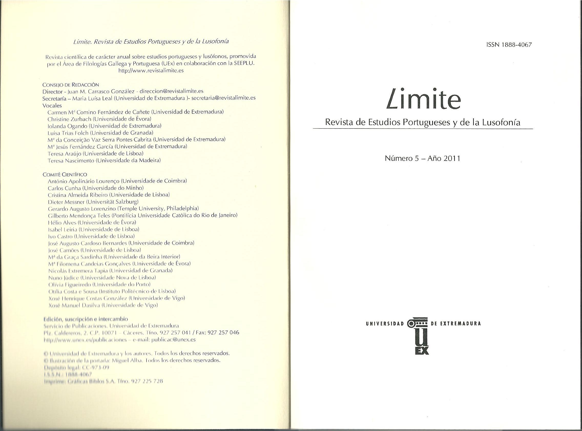 | Citation: | VILELA, Ana Luísa. "Como ser poeta romântico, pobre, comunista, crente, homossexual e alentejano: Célula, um inédito de Raul de Carvalho". Limite. Revista de Estudios Portugueses y de la Lusofonía, nº 5, Universidad de Extremadura, ISSN: 1888-4067, pp. 235-247. |