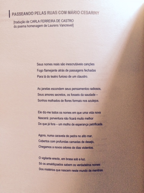 | Citation: | Passeando pelas Ruas com Mário Cesariny (Tradução de Carla Ferreira de Castro do poema homenagem de Laurens Vancrevel) |