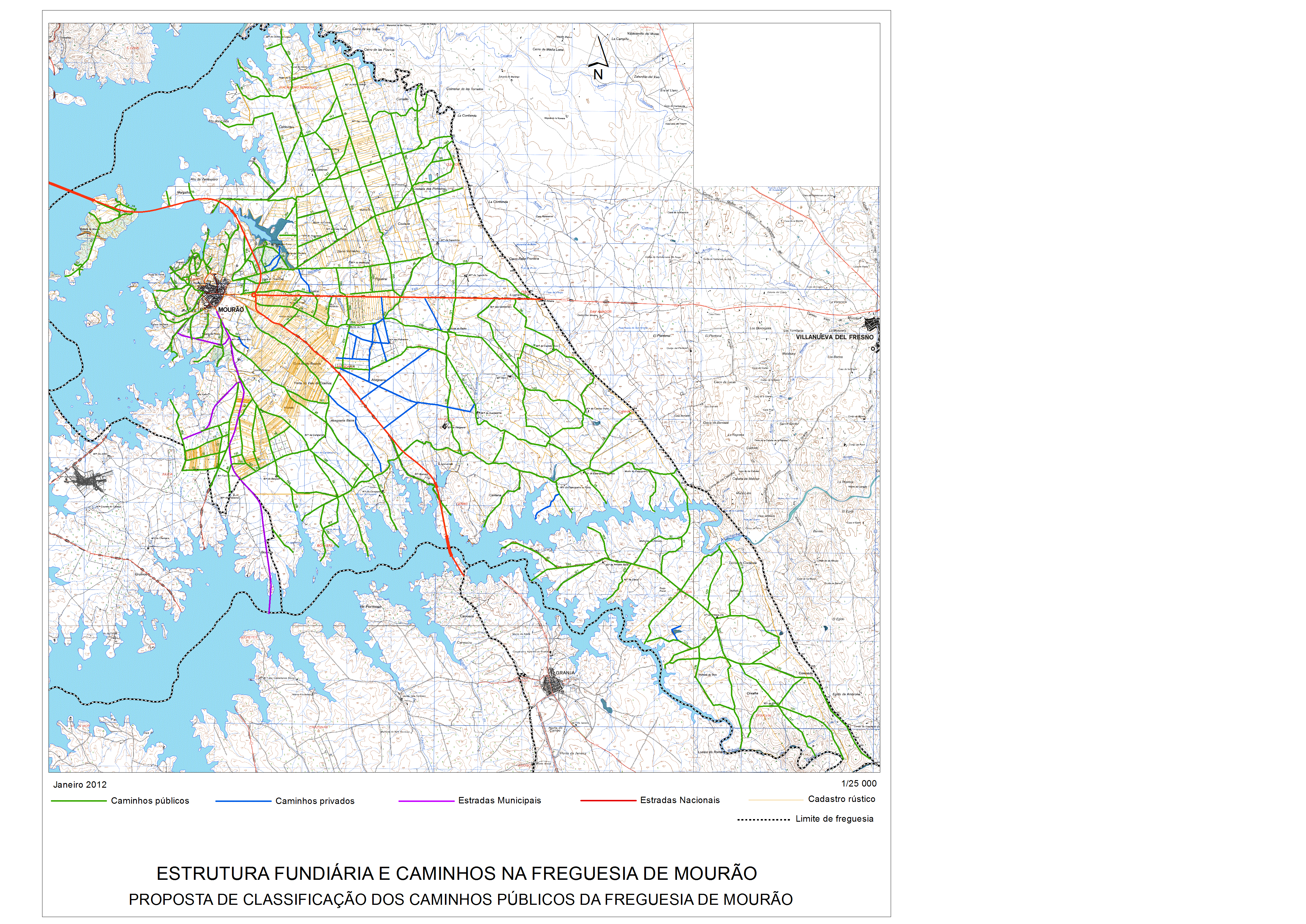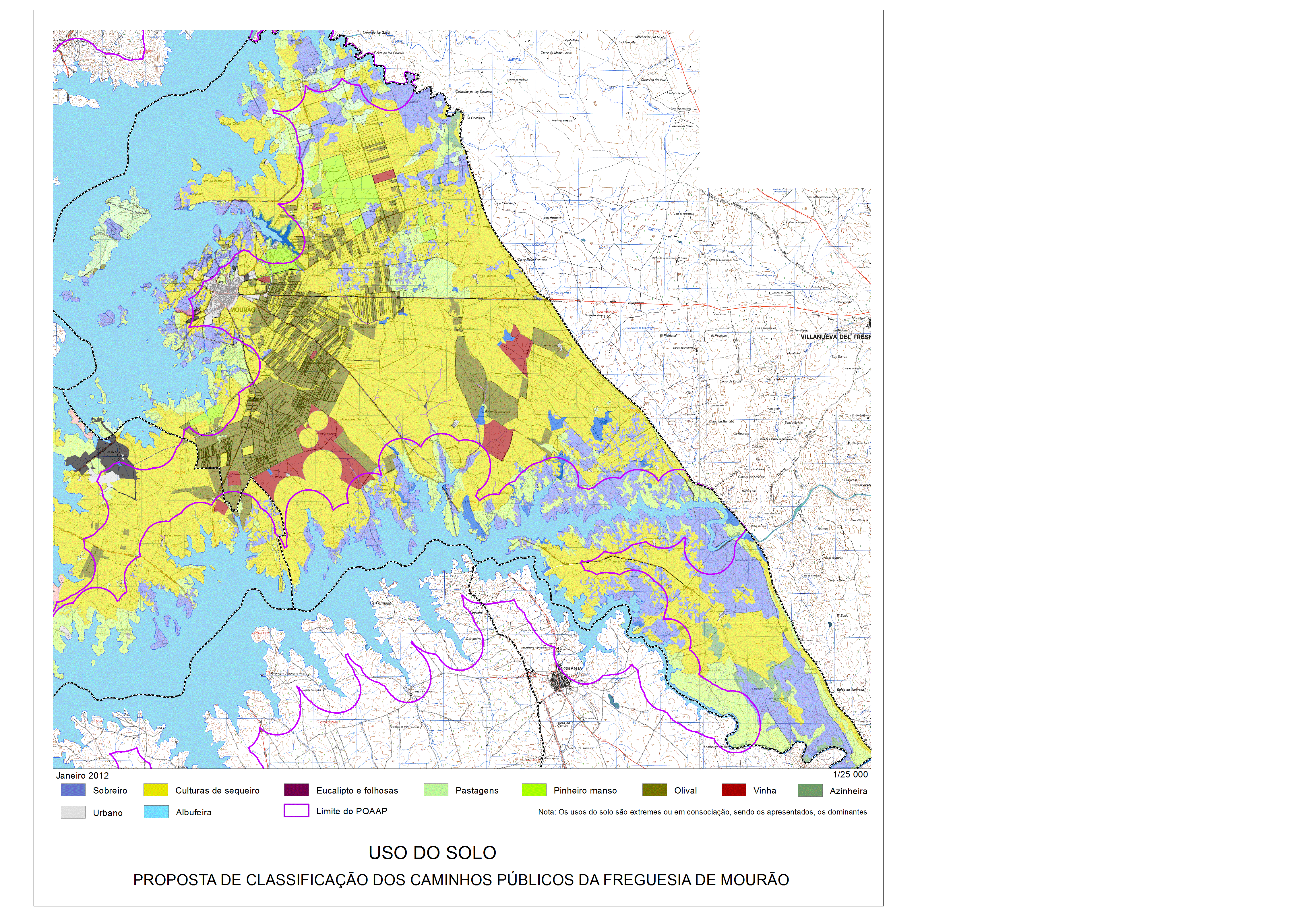 Tecem-se algumas considerações sobre a apropriação do território pelo Homem ao longo dos tempos através dos caminhos, apresentam-se as funções dos caminhos no meio rural alentejano e apontam-se novos usos. Apresentam-se as unidades de paisagem consideradas na área em estudo e a cartografia que lhe serviu de base (RAN, Uso do Solo, Amplitude Visual). Fazem-se propostas de percursos com diversos usos por alguns dos caminhos existentes; ABSTRACT: The present essay emerges from the need of identification of public paths in the territory of Mourão, since some have been closed by private individuals or even have disappeared. So, for every path, is made an identification card along with a recommendation about the possibility of publicity, by the members of the city commission created for this purpose. It’s also presented a physical plant of all paths considered public, as well as those which are private. The juridical arguments that support the public path concept and the city competence for deliberate in such matters are presented too.