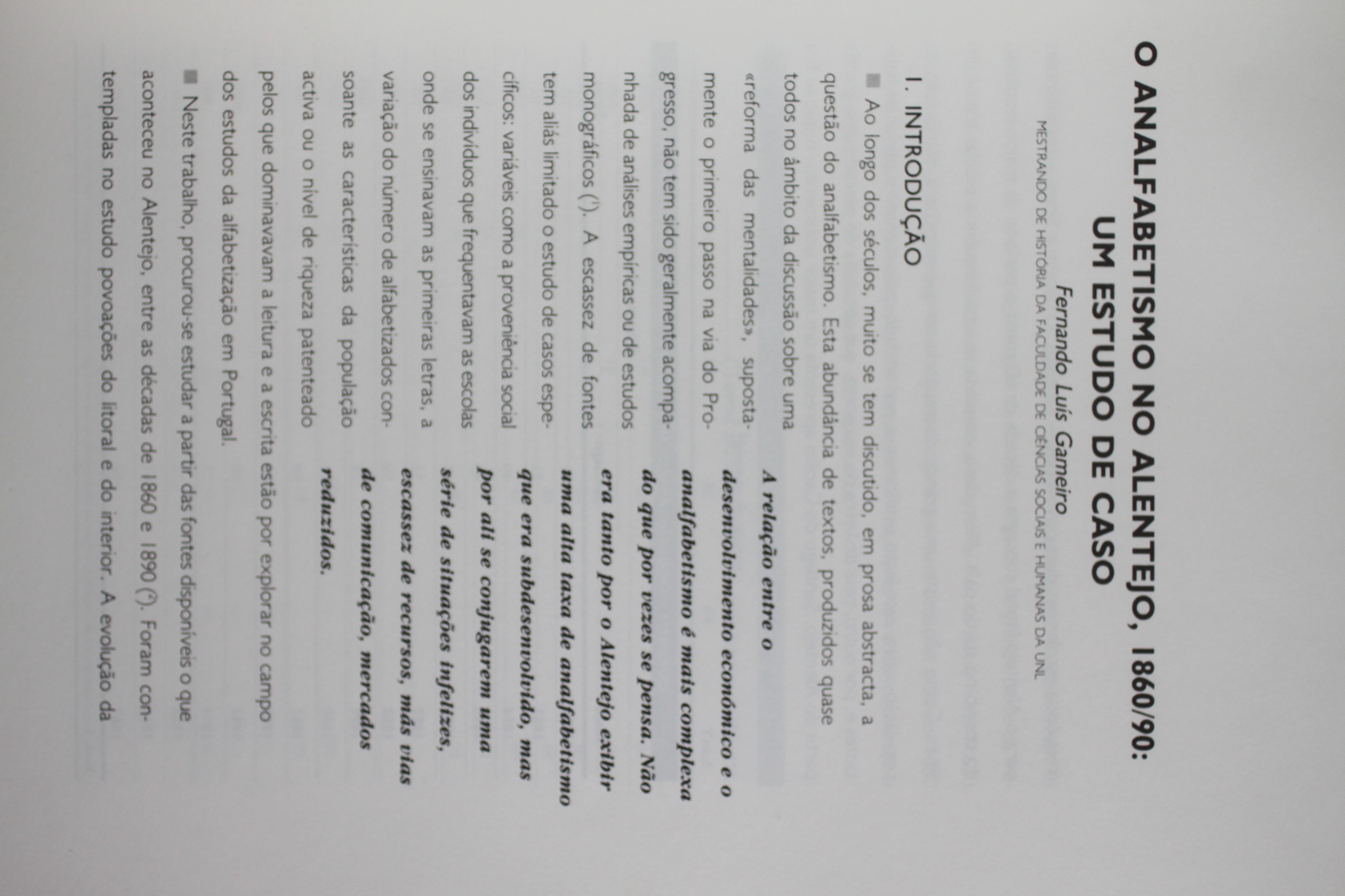 | Citation: | Gameiro, Fernando Luís - A alfabetização no Alentejo. Um estudo de caso. In Colóquio Educação e Sociedade, nº 2,Lisboa: Fundação Calouste Gulbenkian, 1993, pp. 69-85.ISSN:0872-282X |