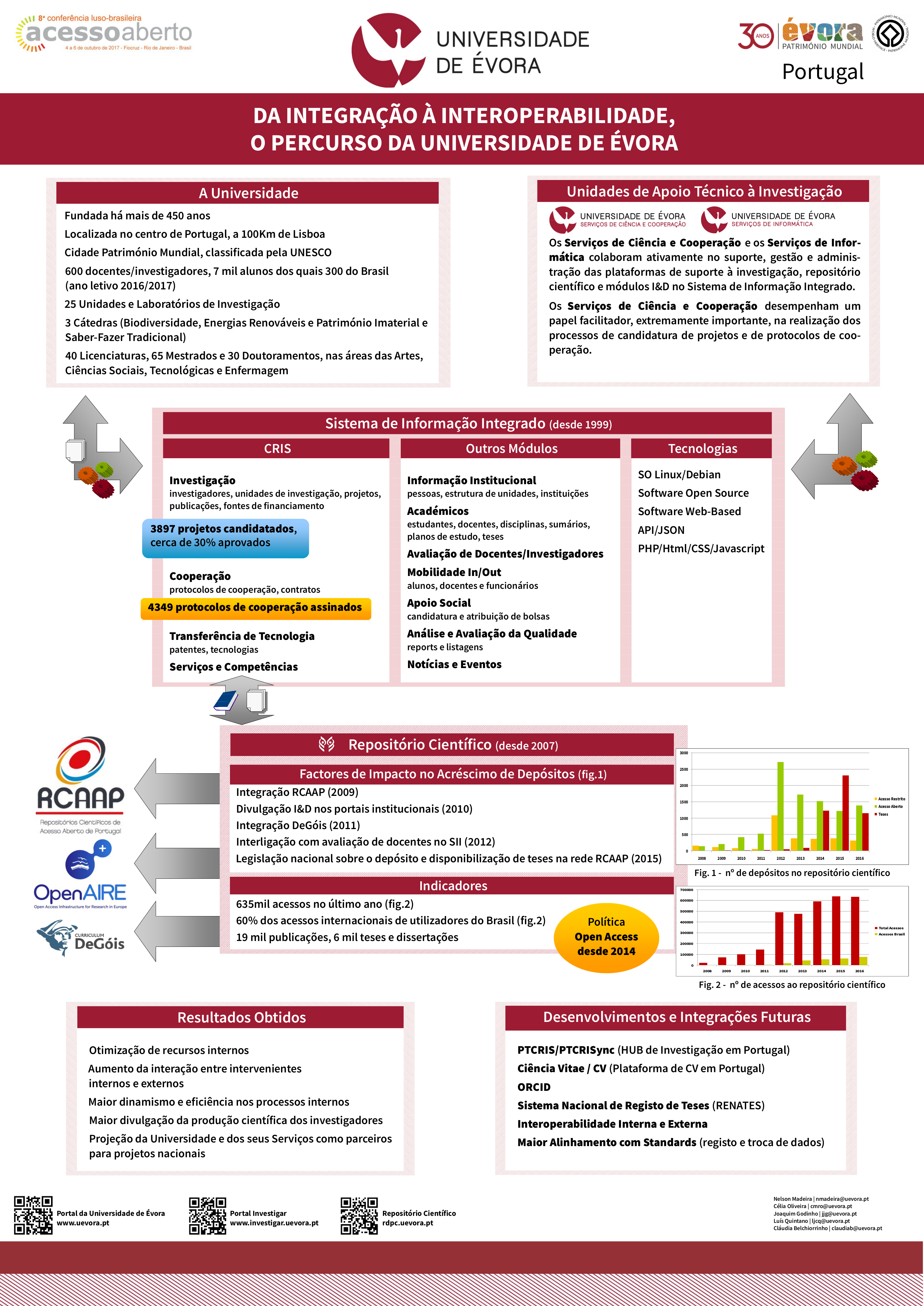 | Citation: | Madeira, Nelson; Oliveira, Célia; Quintano, Luis; Godinho, Joaquim; Poster UE- Da integração à Interopabilidade, o percurso da Universidade de Évora, IN 8ª Confoa - Conferência Luso Brasileira sobre Acesso Aberto, Rio de Janeiro 4 a 6 de Outubro, 2017. |