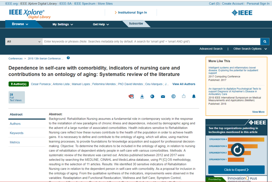 | Title: | Dependence in self-care with comorbidity, indicators of nursing care and contributions to an ontology of aging: Systematic review of the literature |