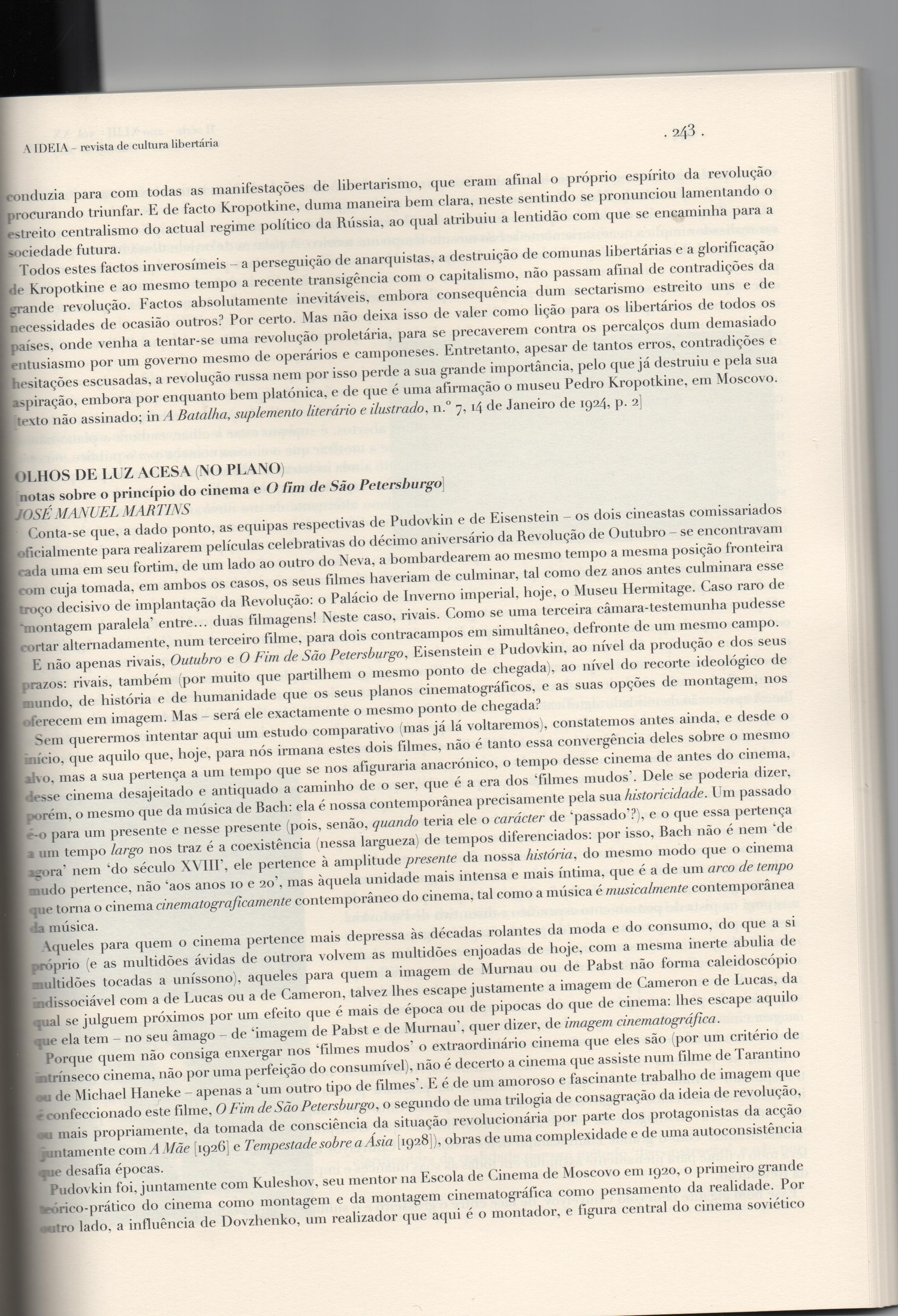 | Citation: | MARTINS, José, “Olhos de luz acesa (no plano) – notas sobre o princípio do cinema e O fim de São Petersburgo”, in A Ideia: Revista de Cultura Libertária, Vol. 81-2-3 - Dezembro de 2017 |