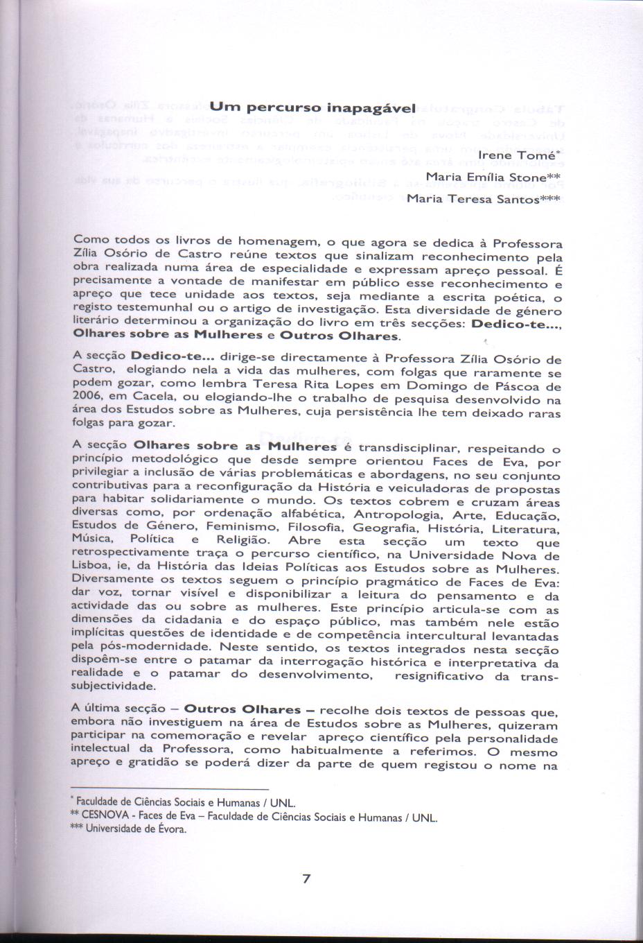 | Title: | Olhares sobre as Mulheres. Homenagem a Zília Osório de Castro |