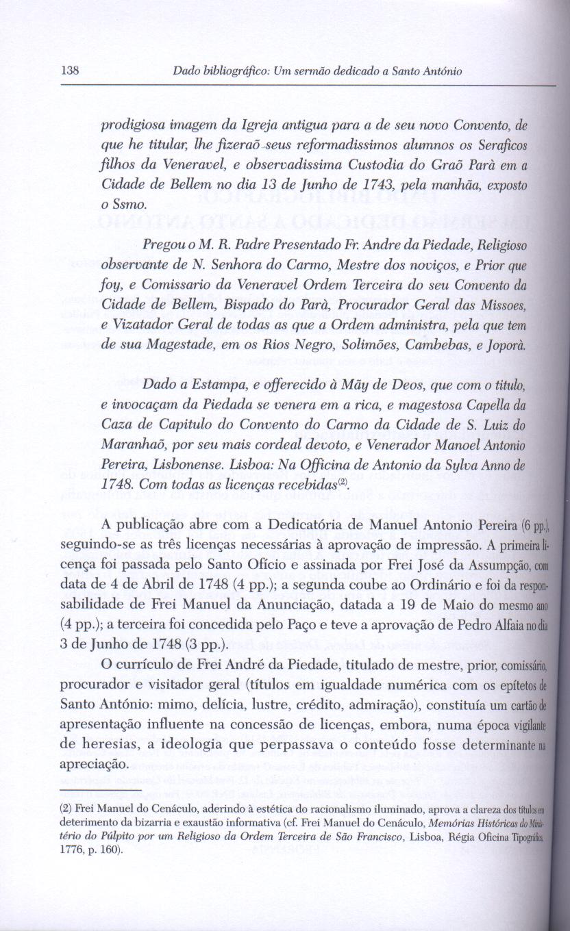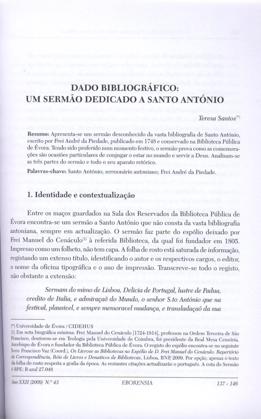 | Title: | Dado Bibliográfico. Um sermão dedicado a Santo António |